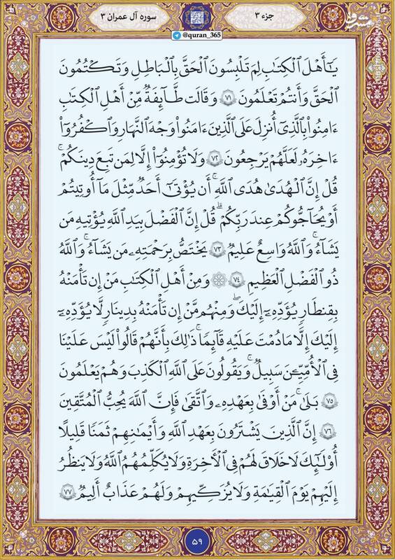 به گزارش پایگاه خبری و نحلیلی صبح هامون ترتیل صفحه پنجاه و نه قرآن سوره مبازکه آل عمران را بخوانید.