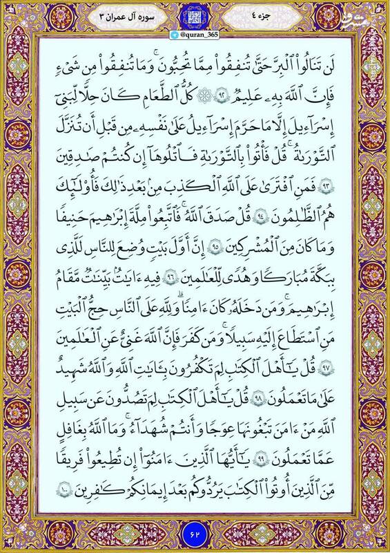 به گزارش پایگاه خبری تحلیلی صبح هامون ترتیل صفحه شصت و دو قرآن کریم سوره مبارکه آل عمران را بخوانید.