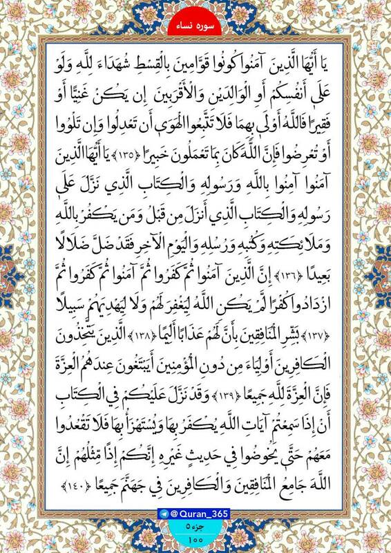 به گزارش پایگاه خبری تحلیلی صبح هامون ترتیل صفحه صد قرآن کریم سوره مبارکه نساء را بخوانید.