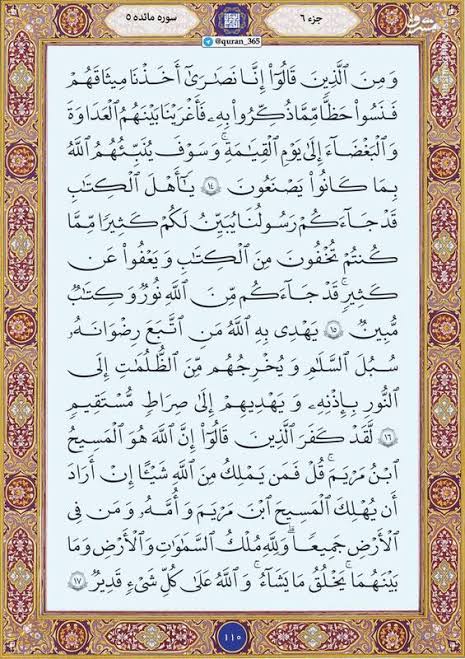 به گزارش پایگاه خبری تحلیلی صبح هامون ترتیل صفحه صد و ده قرآن کریم سوره مبارکه مائده را بخوانید.
