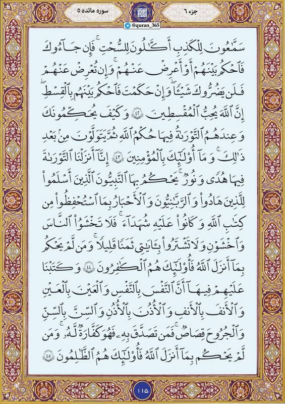 به گزارش پایگاه خبری تحلیلی صبح هامون ترتیل صفحه صد و پانزده قرآن کریم سوره مبارکه مائده را بخوانید.