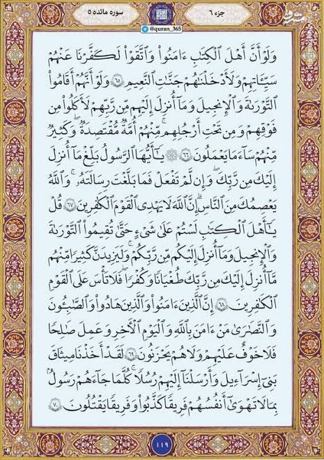 به گزارش پایگاه خبری تحلیلی صبح هامون ترتیل صفحه صد و نوزده قرآن کریم سوره مبارکه مائده را بخوانید.