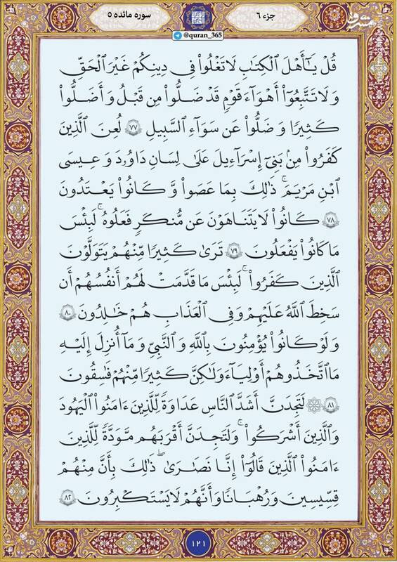 به گزارش پایگاه خبری تحلیلی صبح هامون ترتیل صفحه صد و بیست و یک قرآن کریم سوره مبارکه مائده را بخوانید.