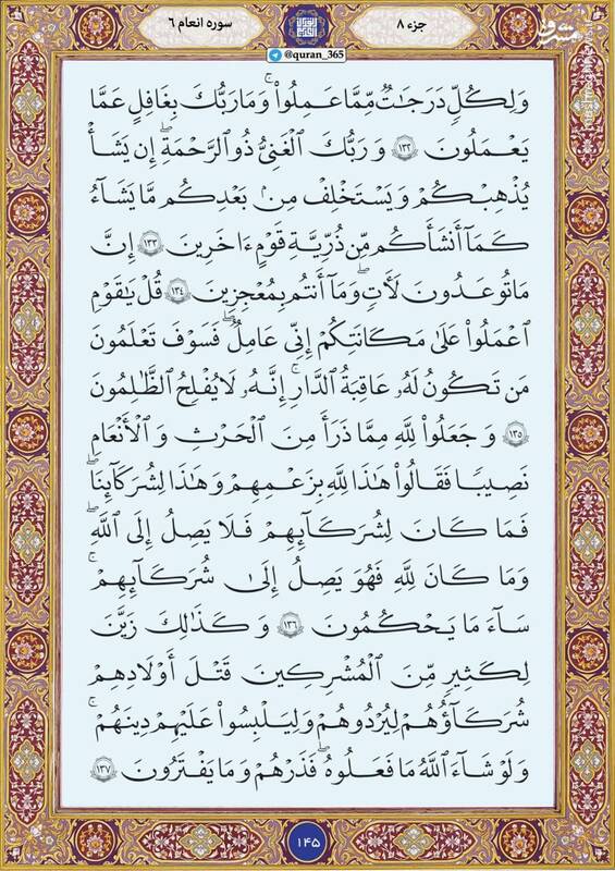 به گزارش پایگاه خبری تحلیلی صبح هامون ترتیل صفحه صد چهل و پنج قرآن کریم سوره مبارکه انعام را بخوانید.
