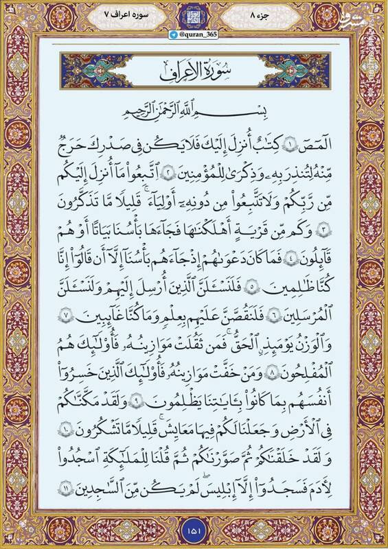 به گزارش پایگاه خبری تحلیلی صبح هامون ترتیل صفحه صدپنجاه و یک قرآن کریم سوره مبارکه اعراف را بخوانید.