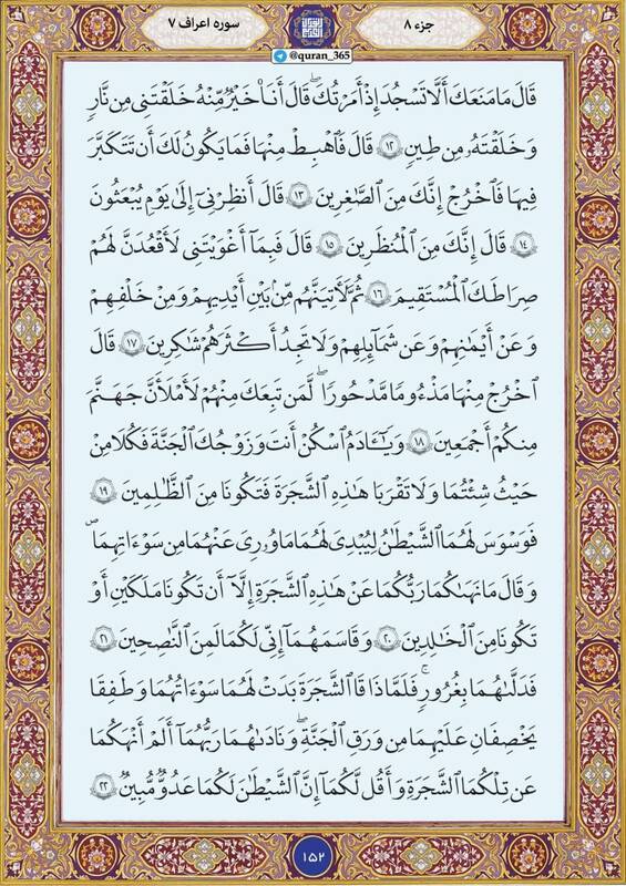 به گزارش پایگاه خبری تحلیلی صبح هامون ترتیل صفحه صد پنجاه و دو قرآن کریم سوره مبارکه اعراف را بخوانید.