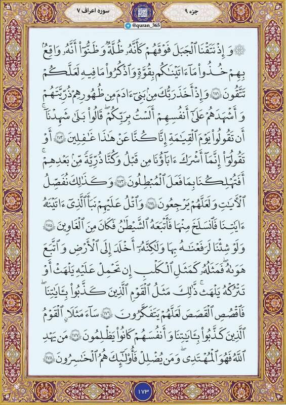 به گزارش پایگاه خبری تحلیلی صبح هامون نرنیل صفحه صد هفتاد و سه قرآن کریم سوره مبارکه اعراف را بخوانید.