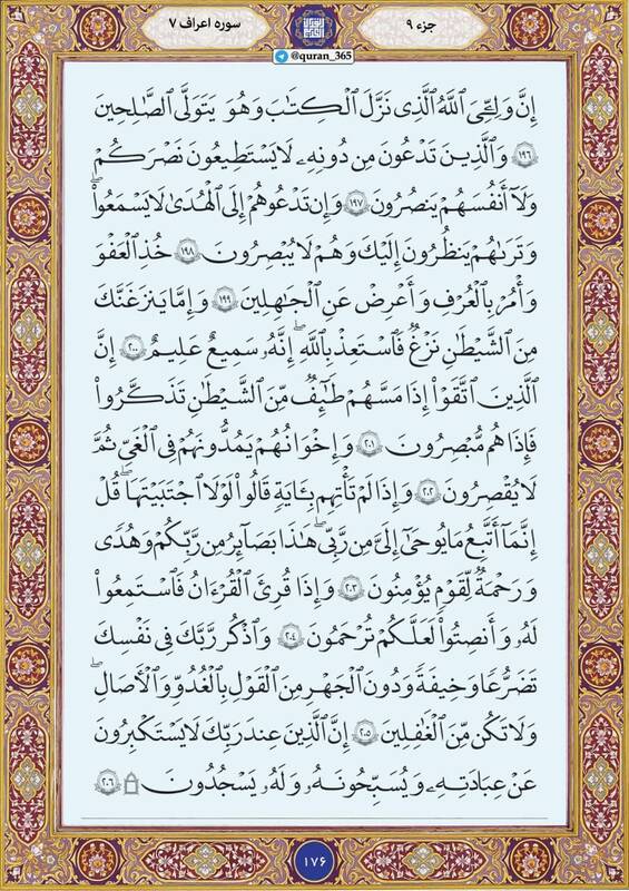به گزارش پایگاه خبری تحلیلی صبح هامون ترتیل صفحه صد هفتاد و شش قرآن کریم سوره مبارکه اعراف را بخوانید
