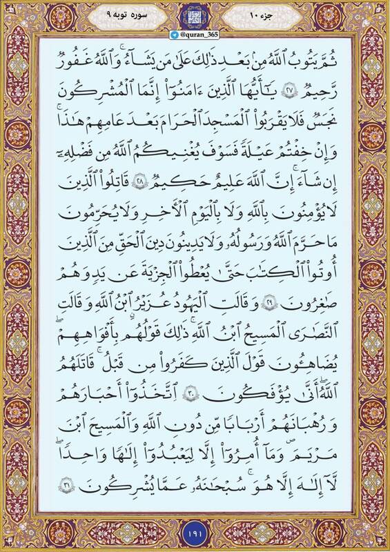 به گزارش پایگاه خبری تحلیلی صبح هامون ترتیل صفحه صد نود و یک قرآن کریم سوره مبارکه توبه را بخوانید
