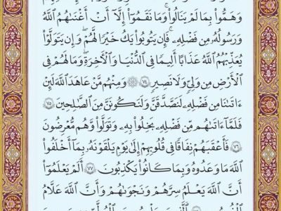 به گزارش پایگاه خبری تحلیلی صبح هامون ترتیل صفحه صد نود و نه قرآن کریم سوره مبارکه توبه را بخوانید.