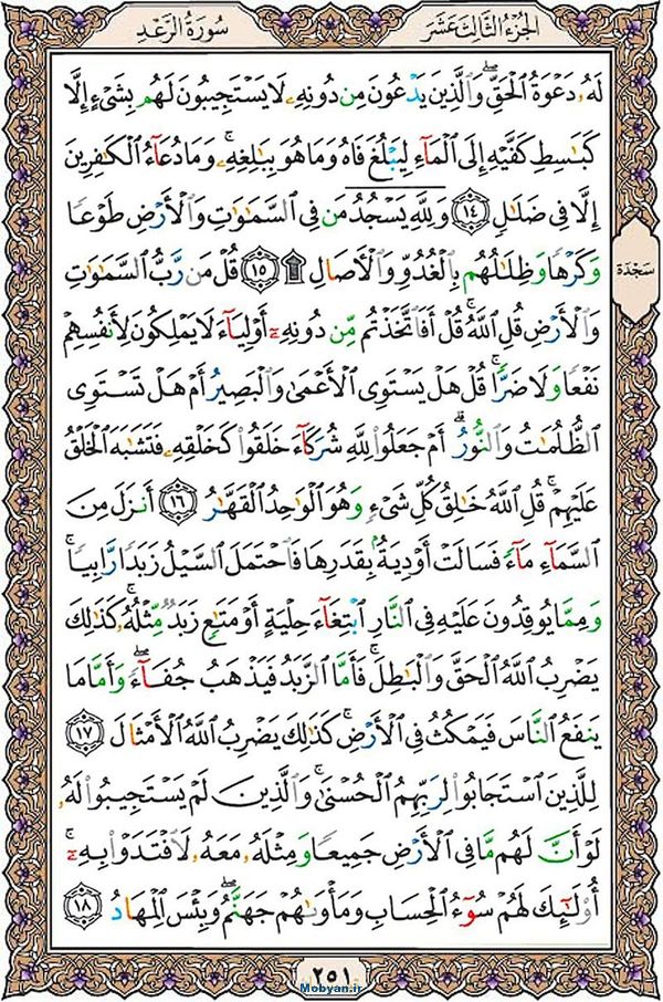 به گزارش پایگاه خبری تحلیلی صبح هامون ترتیل صفحه دویست پنجاه و یک قرآن کریم سوره مبارکه الرعد را بخوانید.